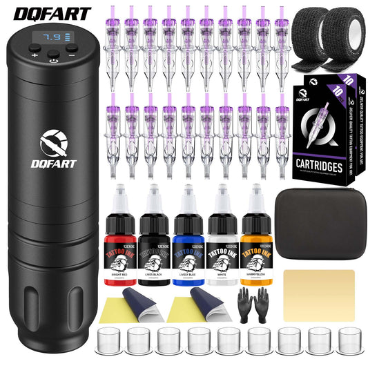 Wireless Tattoo Pen Set Single Battery LED Display with Ink and Tattoo Needle Cartridge